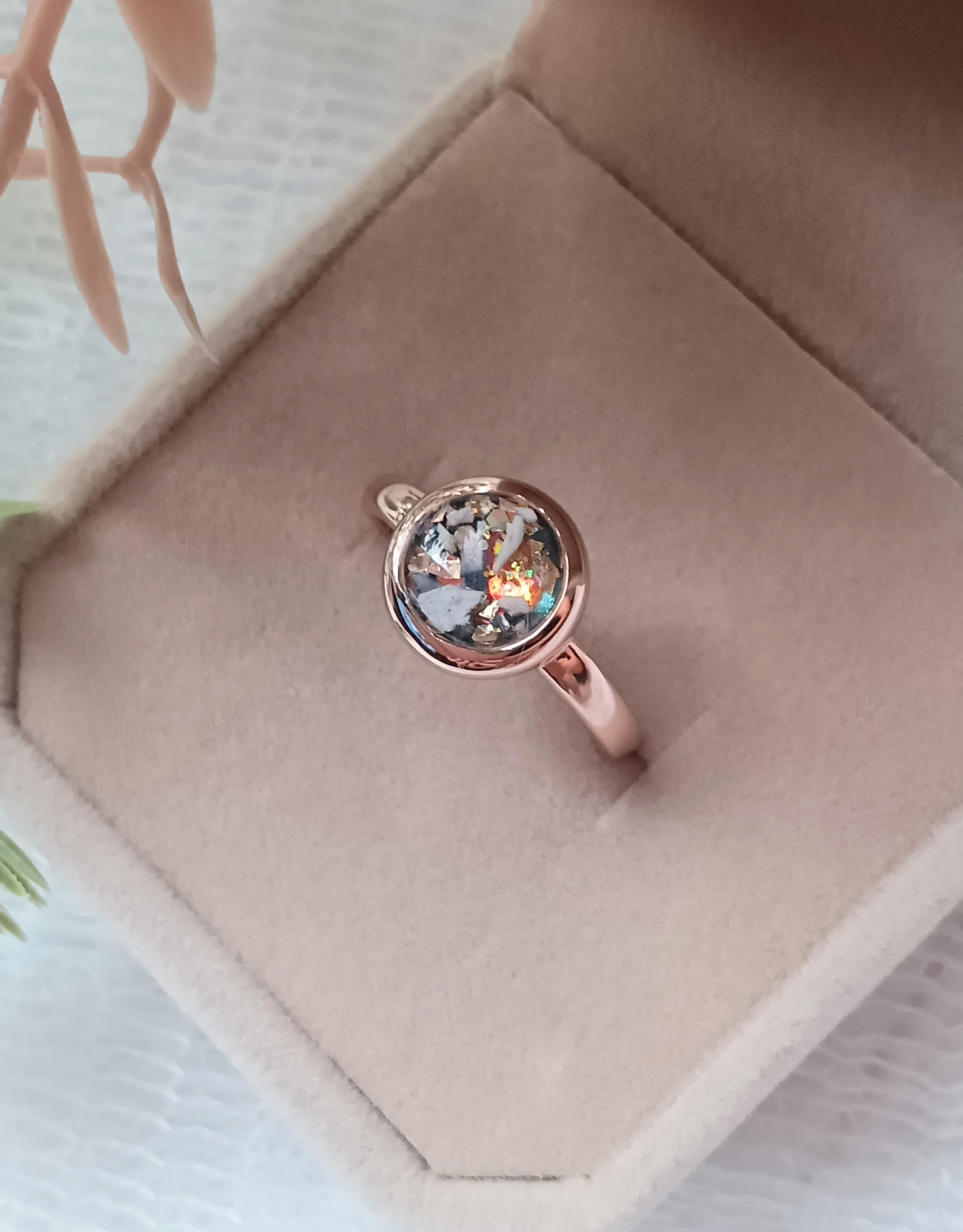 写真のリングには白い毛をベースに黒い毛を入れております。