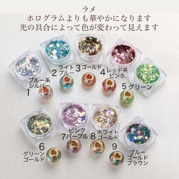 色: ホログラム、ラメ、シェルよりお選びいただけます。